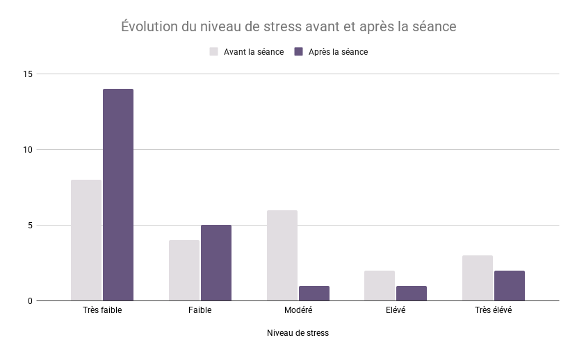 - « Globalement, avez-vous apprécié la séance ? » avec une échelle de 1 (pas du tout) à 5 (oui).